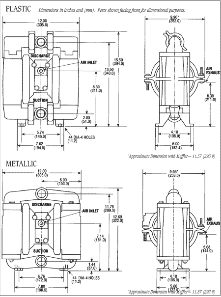 Muffler supplied with each pump